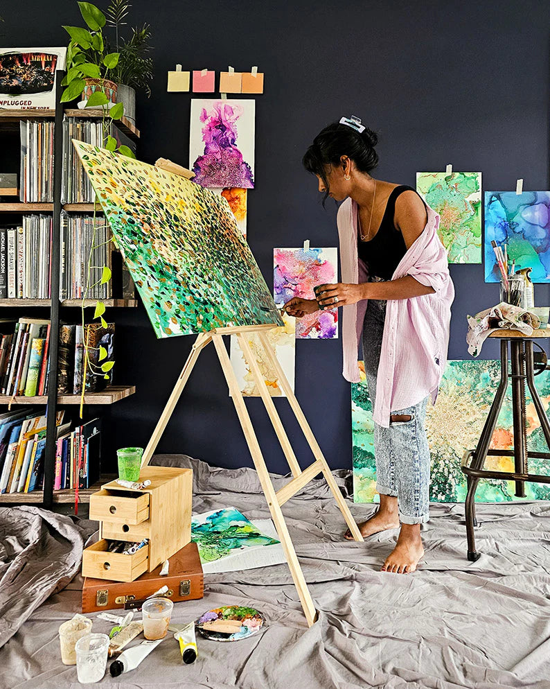 Welcome. My name is Janani and I am an artist and art therapist based in Sydney, Australia. I have always loved creating art, but my relationship with artmaking as a deep, spiritual and healing experience began after particularly challenging period in my life. I began to explore and express my feelings through art and writing and, for the first time in my life, I felt connected and in tune with myself. It was as if I was meeting my soul for the first time. This process of ‘rewriting’ my life became healing and cathartic and formed the foundation of my practice which is focused on harnessing the power of creating, understanding and viewing art to heal. Through my art and art therapy sessions, I invite you to explore aspects of the human condition with greater ease, freedom and courage.